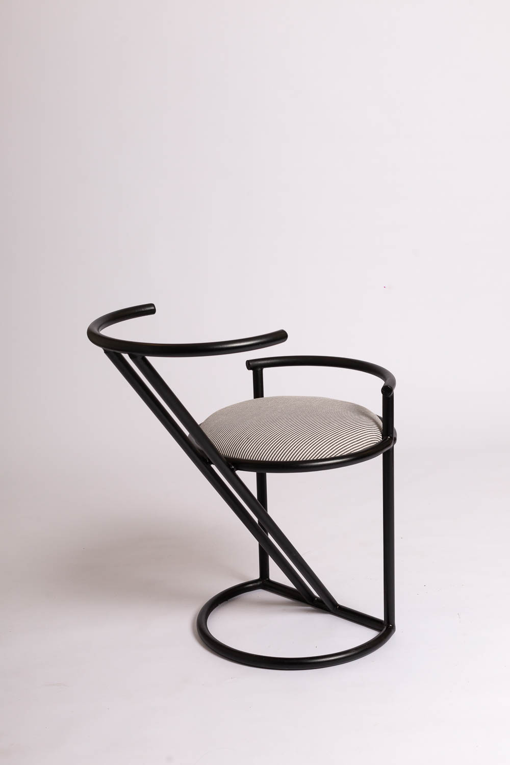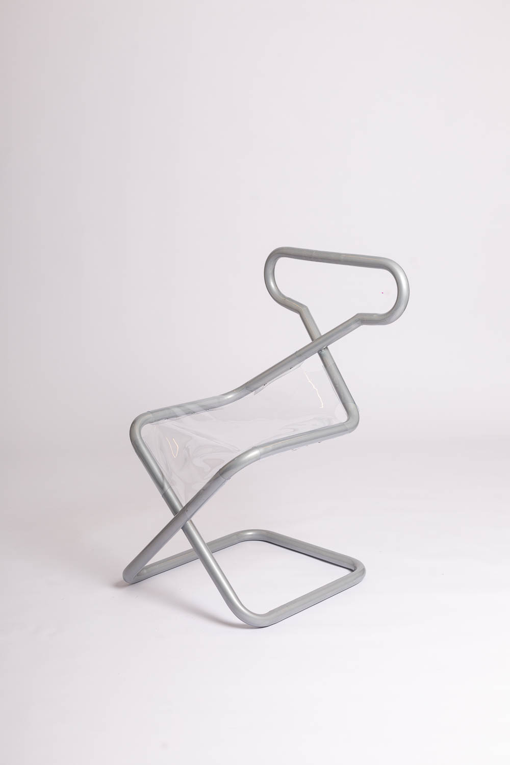Inestable questions the notions of comfort and stability typically associated with a conventional chair. Made from tubular steel, its linear structure incorporates bends and crossings that generate an immediate sense of instability and structural discomfort, enough to make one doubt its functionality. The proposal builds on this initial premise, creating a piece that, despite its deliberately fragile appearance, is in fact entirely solid and stable.