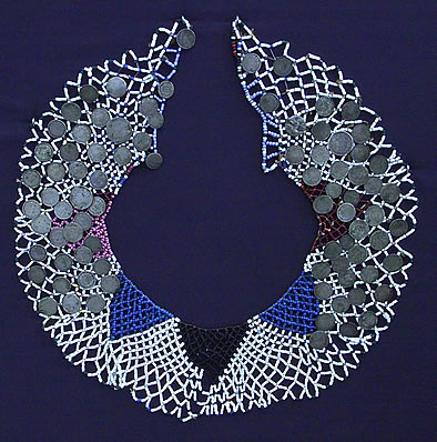 MeñakeLas antiguas y valoradas llancas (cuentas de piedra) mencionadas por los cronistas, fueron progresivamente desplazadas por las "chaquiras", cuentas de vidrio de colores, introducidas por los blancos en el comercio con los indígenas. Abundan los testimonios sobre sartas de chaquiras que las mujeres enrollaban a sus trenzas, sus muñecas o sus tobillos, así como las referencias a los anchos cinturones, cubiertos de cuentas. Ya en 1806, Luis de la Cruz, registra estos cintos entre los pehuenches con el nombre de "quepigue" En ellos, los extremos de los tendones que enhebran las sartas de cuentas de distintos largos, se fijan a la base de cuero siguiendo los requerimientos del diseño.También se confeccionaron piezas con enhebrados más complejos que los de las simples sartas, en los que los hilos realizaban trayectos múltiples, lo que permitía obtener verdaderas mallas. Según el tipo de enhebrado, estas mallas eran más compactas, como en los tapawe, o más abiertas y de celdas romboidales como las de los meñake -collares anchos y planos que rodeaban la base del cuello- y las de los llankatu pechu -pectorales de chaquiras, enriquecidos a veces con el agregado de monedas, tubos y campanitas- que se pueden observar en esta vitrina. Con el brillo y las tonalidades del vidrio que las chaquiras pusieron a disposición de las mujeres, éstas supieron crear un arte personalísimo que adornaba partes de su cuerpo con bellos acentos de color. "(...) pero las mujeres de los caciques o las mujeres ricas, demuestran su lujo llevando ese cinturón de cuero, sobre el cual con hilos de rendones [tendones] fijan dibujos de perlas de colores de lo más regulares, parecidos siempre, más o menos, a grecas por las líneas rectas que los componen; ese adorno es el más apreciado por las mujeres". (En 1829 d'Orbigny visitó Carmen de Patagones y recorrió parte del Río Negro) Alcide d'Orbigny, Voyage dans l'Amérique Méridionale. París, 1835-1847 "La menor acción que hacen produce una sonaja, y como la tienen por una cosa magnífica, se mueven mucho más de lo que es preciso". (Federico Barbará integró el Ejército del Sur en las campañas contra las ofensivas indígenas de 1855 y 1856) Federico Barbará, Usos y costumbres de los indios pampas, 1856. |