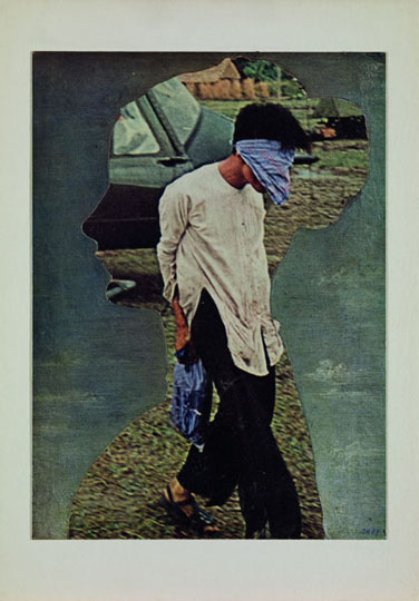 Estas dos obras fueron realizadas por el artista checo a través del uso de dos de sus elementos técnicos preferidos: el collage y el espejo. En No busques la mujer, la fotografía de Antonio Maniscalco en la que se representa un vagabundo vendado que camina ha sido recortada y puesta en el fondo de la reproducción de la célebre Muchacha de perfil de Pollaiolo (c. 1470), con lo que se resalta el noble perfil femenino y, al combinar en el collage estas dos imágenes heterogéneas, produce un gran efecto. En Retrato de bolsillo el rostro sereno y dulce de la mujer es alterado por la transposición de la imagen sobre una superficie espejada: la fragmentación del rostro es una representación simbólica de la condición del hombre en el mundo contemporáneo. |