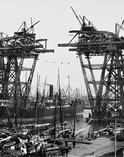 Equipos de fotógrafos del Ferrocarril del Sur. “Puente transbordador Presidente Nicolás Avellaneda en construcción”, 1913. Colección Museo Nacional Ferroviario.