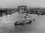 Equipos de fotógrafos del Ferrocarril del Sur. “Puente transbordador Presidente Nicolás Avellaneda en funcionamiento”, ca. 1914. Colección Museo Nacional Ferroviario.