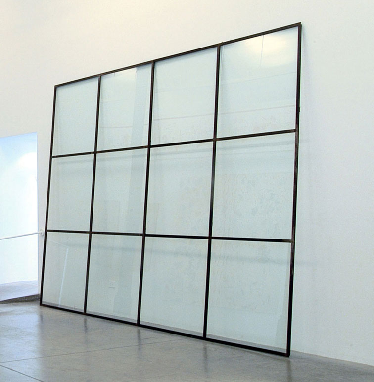 ALIGHIERO BOETTI "Nada por ver nada por ocultar", 1969/89 Hierro y vidrio, 300 x 400 cm. Col. C-arte Prato, Centro per l'Arte Contemporanea Luigi Pecci, Italia