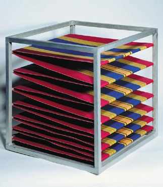 Hierro y tela coloreada, 20 x 20 x 25 cm.