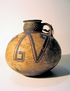 Vasija cerámica policromada y horneada de la cultura Chané, Salta Colección Museo Etnográfico UBA