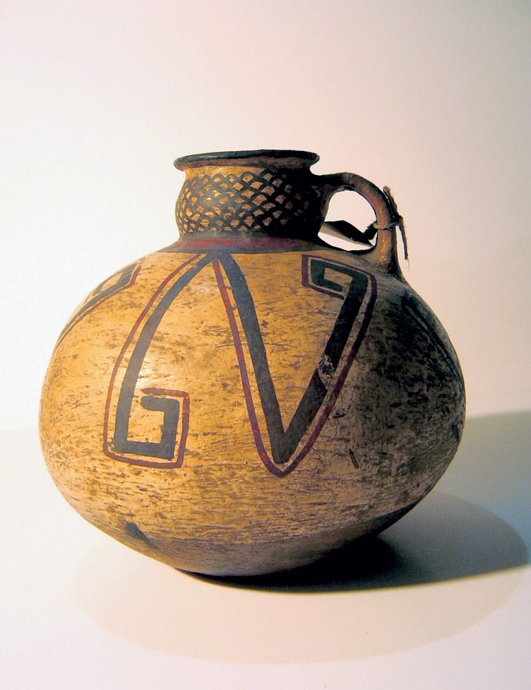 Vasija cerámica policromada y horneada de la cultura Chané, Salta