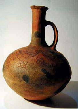 Botellón de cuello largo, cerámica policromada y horneada de la cultura matacos, Embarcación, Salta. Colección Museo Etnográfico UBA