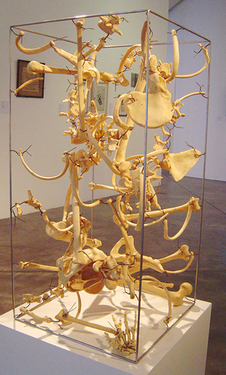 Barra de acero, resina y alambre, 100 x 50 x 50 cm.