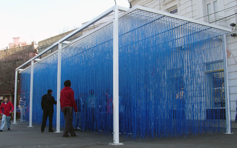 JESUS RAFAEL SOTO "Penetrable azul", 1999 Hilos de nailon y aluminio 380 x 460 x 1400 cm (peso aproximado 3,181 kg) Colección particular