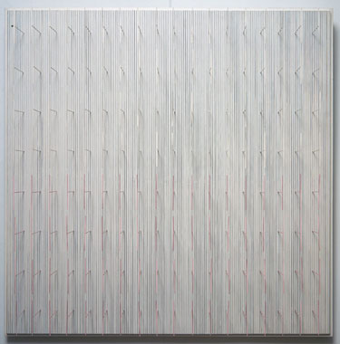 “Tes blancas y rosadas”, 1972 Pintura sobre madera y metal Col. Maria Cristina y Pablo Henning, cortesía Sicardi Gallery, Houston Fotografía: Jesús Sánchez Uribe