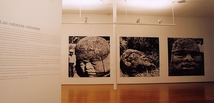El material de esta muestra viene del Estado Veracruz, en el centro de México en torno al Golfo de México y la cultura olmeca, su centro más importante, es una cultura que se asentó en un territorio de selva, de pantano. Estas cabezas colosales son de basalto y este material no se halla en el lugar donde se las encontró, esto significa que tuvieron que transportarlo a través de muchísimos kilómetros; desde la zona volcánica hasta, por ejemplo, San Lorenzo Tenochtitlán; que es la zona de la desembocadura del río Oaxaca.