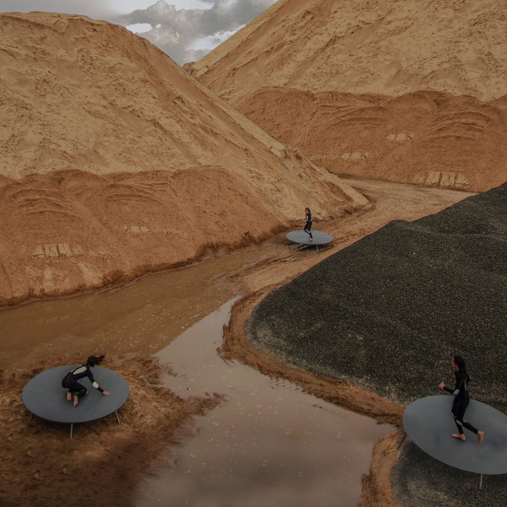 El contacto con el agua, la tierra y la gravedad transforma la acción y desdibuja los límites entre lo sólido y lo líquido, lo efímero y lo perdurable. La obra despliega un paisaje en permanente mutación, guiado por una lógica onírica en la que los cuerpos emergen y desaparecen, y el tiempo se pliega en ciclos donde cada caída anuncia un nuevo comienzo.