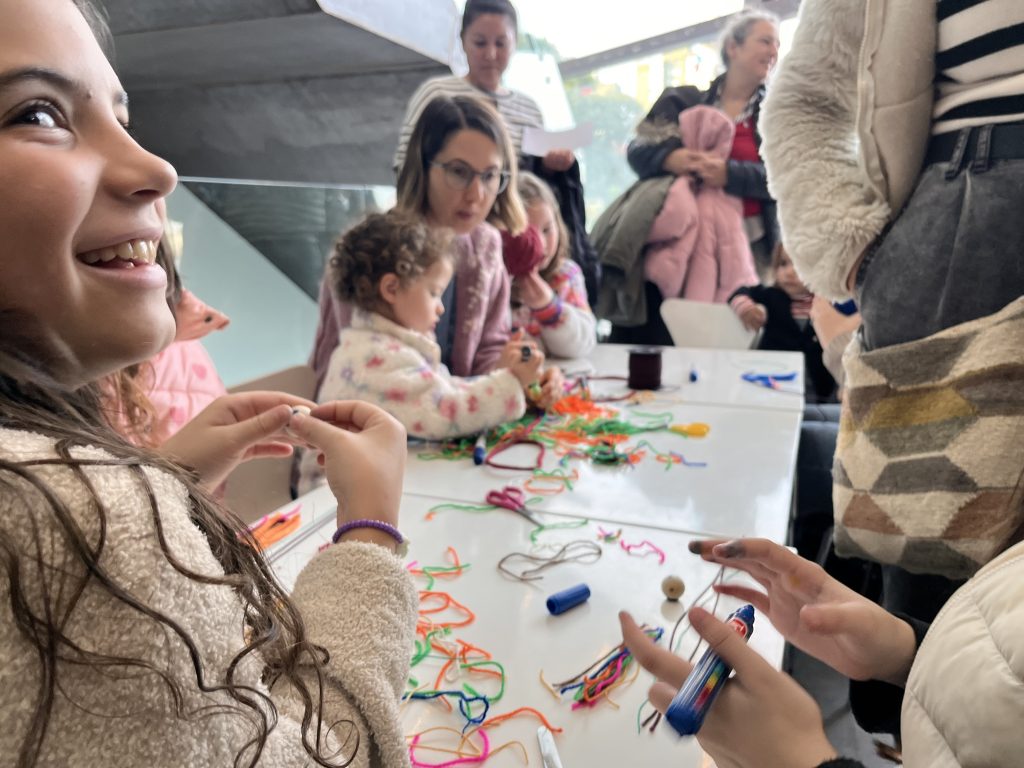 Una tarde diferente para descubrir la muestra en familia: grandes y chicos comparten actividades lúdicas y creativas con máscaras, fortalezas y secretos que viajan en un vaso.